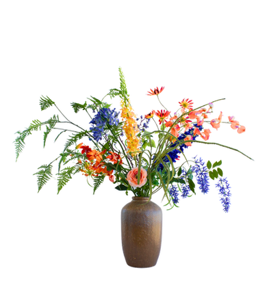Our silk flower arrangements are available in different sizes. They are customized to your interior and preferences, and will be replaced whenever you are in need of something new.